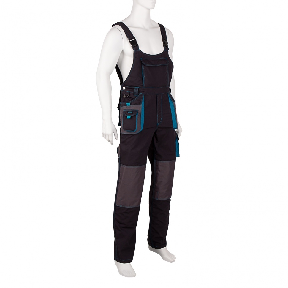 Полукомбинезон Gross 90353 размера L рассчитан на рост 179-185 см и предназначен для защиты рабочего от механических повреждений, ветра и пыли. Может применяться в отапливаемых помещениях или на улице в теплое время года. Изготовлен из смесовой ткани с 35%-м содержанием хлопка, которая не препятствует воздухообмену, поэтому в полукомбинезоне комфортно работать. На 65% ткань состоит из полиэстера, что обеспечивает износостойкость спецодежды. В 14 карманах можно разместить инструменты и необходимые мелочи. Полукомбинезон необходим строителям, электрикам, садовникам, сотрудникам автосервисов, а также рабочим других специальностей. Эластичный пояс комфортно прилегает к телу, не сковывая движений. Имеются карманы на липучках, поэтому мобильный телефон и другие мелкие предметы не потеряются. Специальные нашивки с водоотталкивающей пропиткой защищают боковые карманы от истирания, продлевая срок службы полукомбинезона. На коленной части предусмотрены карманы для амортизационных вкладышей.