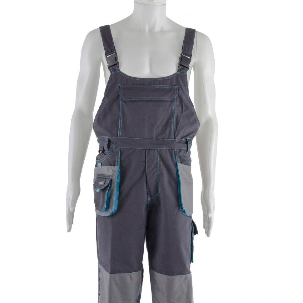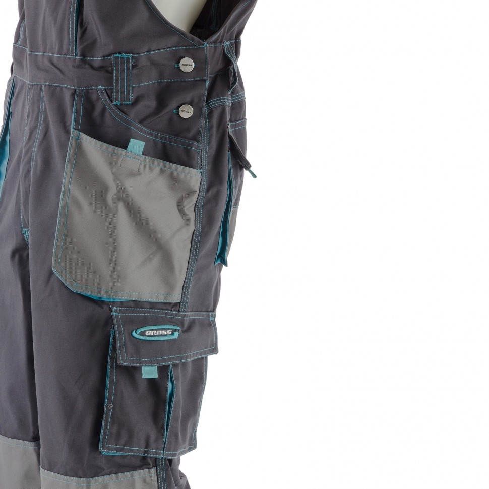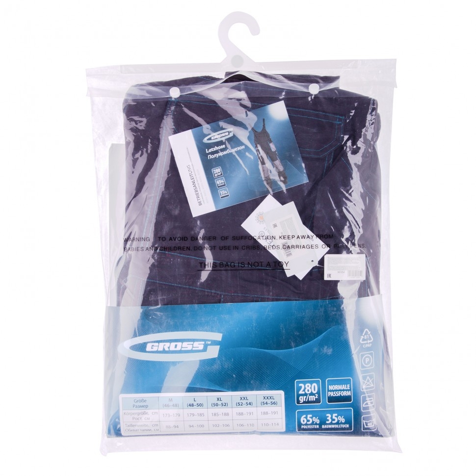 Полукомбинезон Gross 90354 размера XL рассчитан на рост 185-188 см и предназначен для защиты рабочего от механических повреждений, ветра и пыли. Может применяться в отапливаемых помещениях или на улице в теплое время года. Изготовлен из смесовой ткани с 35%-м содержанием хлопка, которая не препятствует воздухообмену, поэтому в полукомбинезоне комфортно работать. На 65% ткань состоит из полиэстера, что обеспечивает износостойкость спецодежды. В 14 карманах можно разместить инструменты и необходимые мелочи. Полукомбинезон необходим строителям, электрикам, садовникам, сотрудникам автосервисов, а также рабочим других специальностей. Эластичный пояс комфортно прилегает к телу, не сковывая движений. Имеются карманы на липучках, поэтому мобильный телефон и другие мелкие предметы не потеряются. Специальные нашивки с водоотталкивающей пропиткой защищают боковые карманы от истирания, продлевая срок службы полукомбинезона. На коленной части предусмотрены карманы для амортизационных вкладышей.
