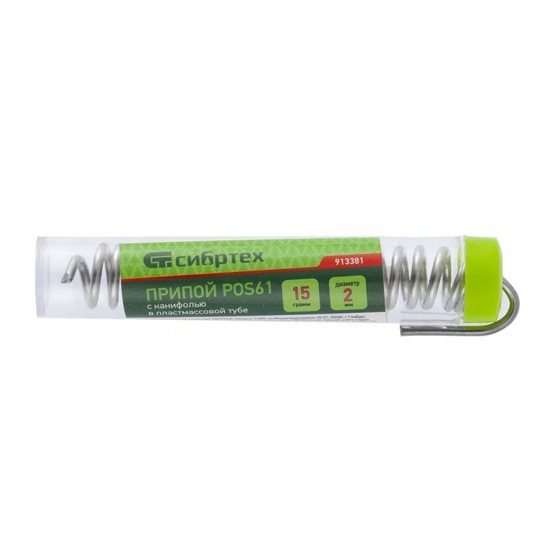 Припой с канифолью D 2 мм, 15 г, POS61, в пластмас.тубе Сибртех