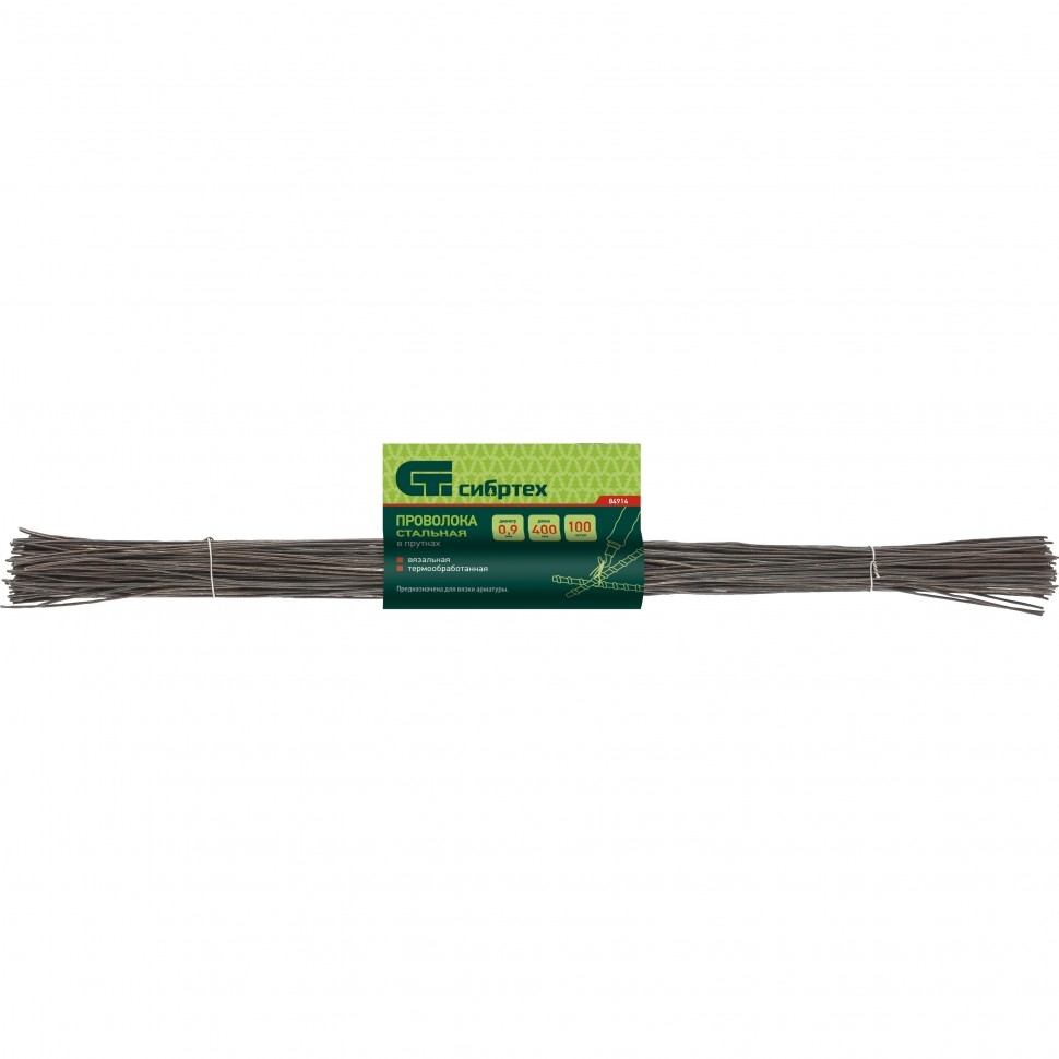| Проволока стальная вязальная в прутках 400 мм х100 шт. термообработанная 0,9 мм, Сибртех | 84914 | 1 шт. |