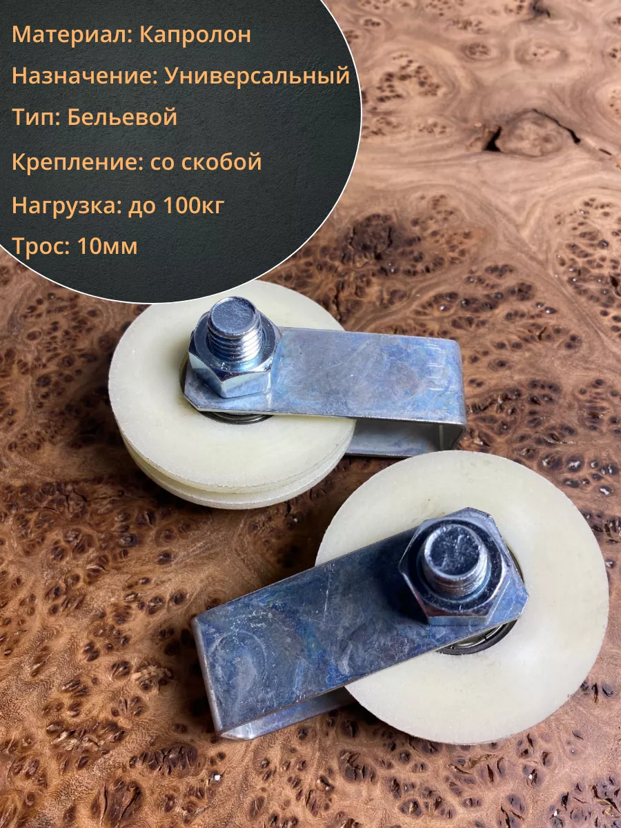 Ролик бельевой Р1065, d60мм, под трос 10мм со скобой (2 шт.)