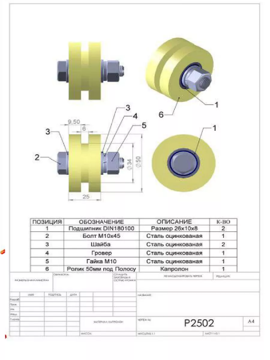 Ролик для откатных ворот под полосу d50мм, капролон, 4 шт.