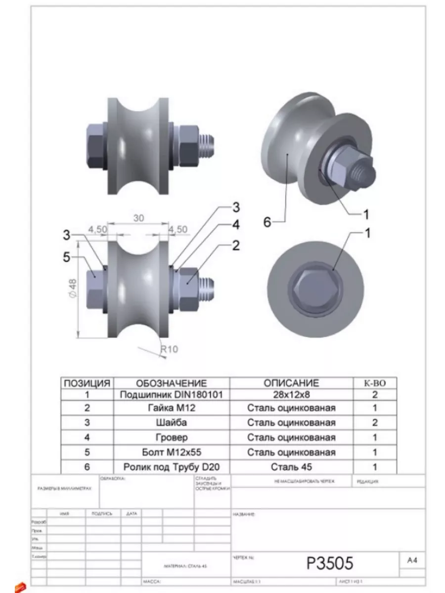 Ролик для ворот Р3505, d50мм под трубу 1/2 d20, металл 2 шт.