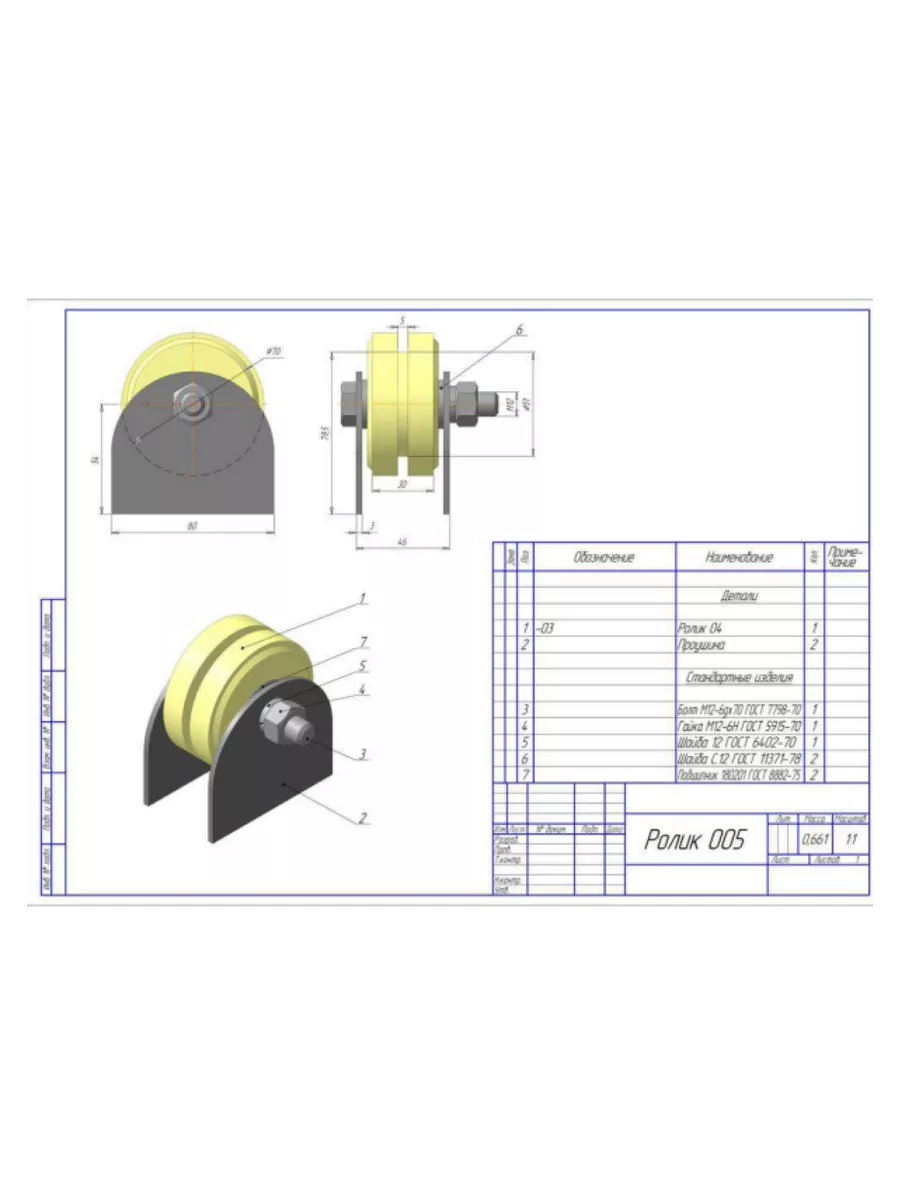 Ролик на пластинах 2402,d70мм под полосу 35мм, капролон, 2шт