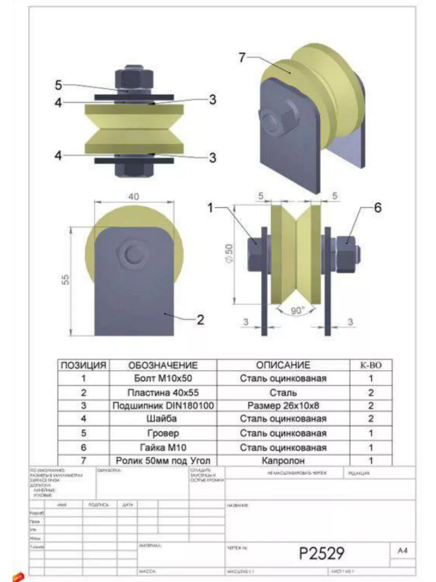 Ролик на пластинах d50мм, под угол ,капролон 4 шт.