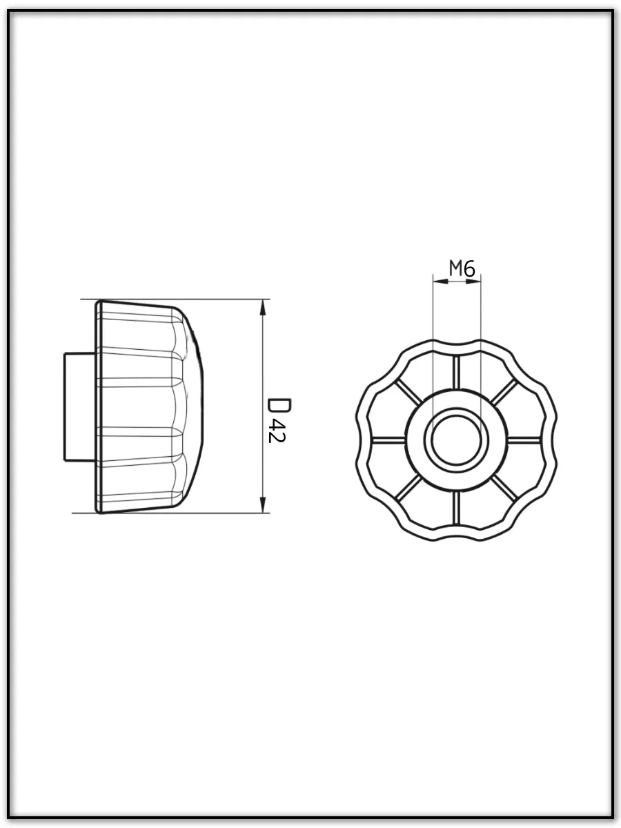 Ручка фиксатор барашек d 42 с гайкой М6,10 шт.
