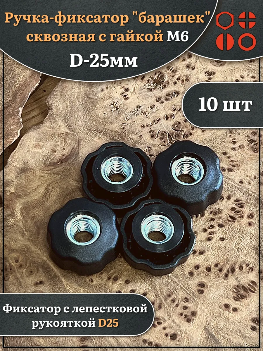 Ручка фиксатор барашек сквозная d 25 с гайкой М6, 10 шт.