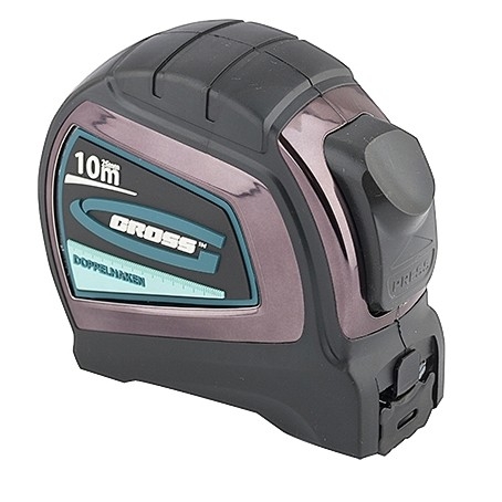 Автоматическая рулетка Gross «Doppelhaken» 31126 с односторонним зацепом, лентой 10 м x 25 мм, двухсторонней шкалой и нейлоновым покрытием, пригодится в хозяйстве и на строительной площадке. С ее помощью можно осуществить замеры стен, полов, различных материалов и конструкций. Удобная эксплуатация — автоматический фиксатор предотвращает скручивание ленты и позволяет удержать ее на необходимой длине. Двухсторонняя шкала — можно использовать любую сторону ленты для замеров, что особенно актуально при определении диаметра объекта. Надежность — корпус рулетки из прочного ABS-пластика и термопластичной резины не скользит в руках, устойчив к перепадам температур и механическим воздействиям.