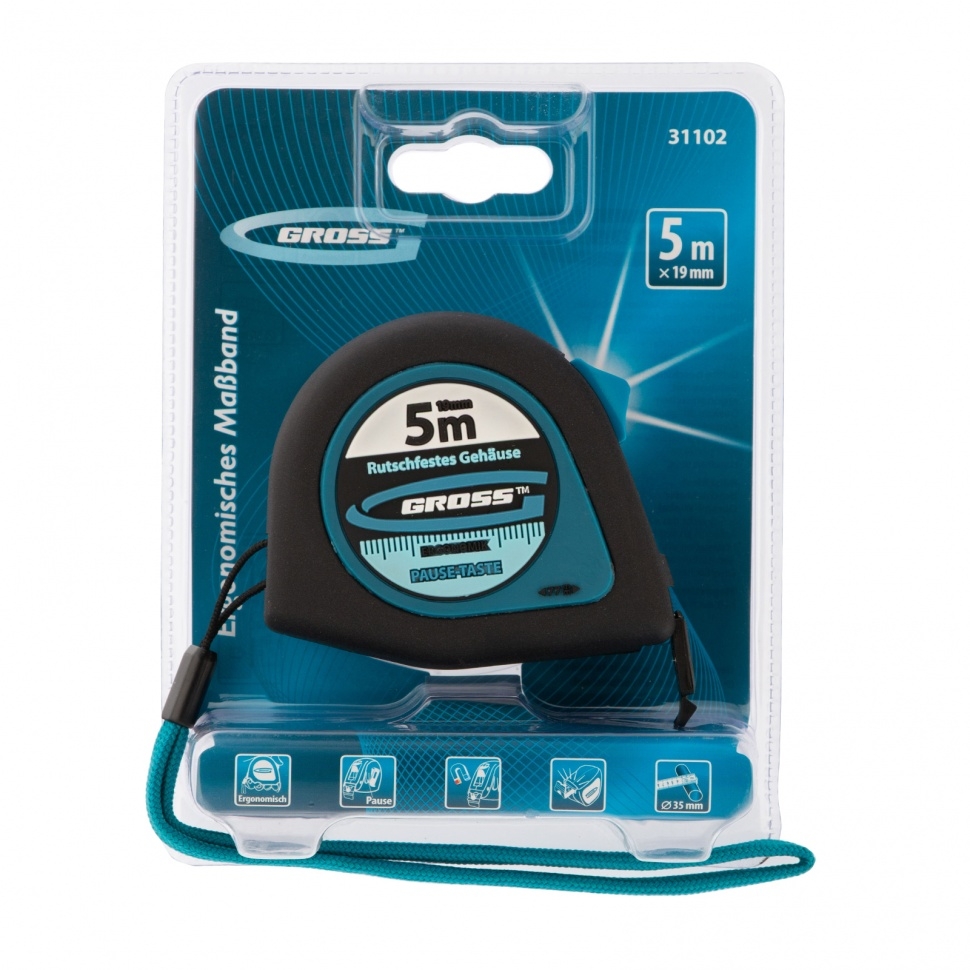 Рулетка Ergonomisch,магнит.обрезин.зацеп 5м х19 мм Gross