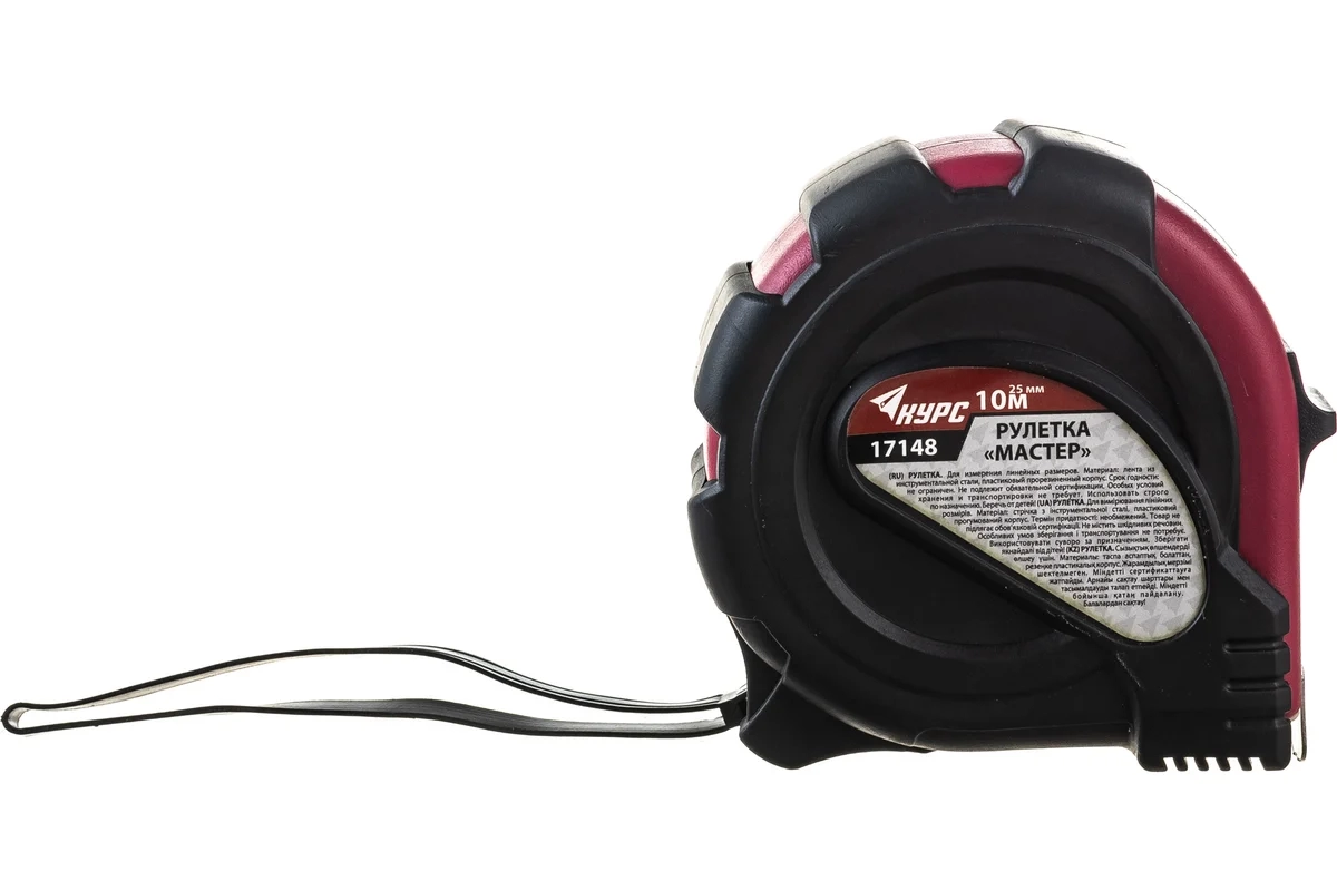 Рулетка Мастер, прорезин.корп., 10м х 25мм