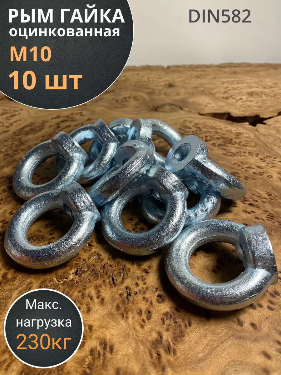 Рым гайка М10 оцинкованная DIN582, 10 шт.