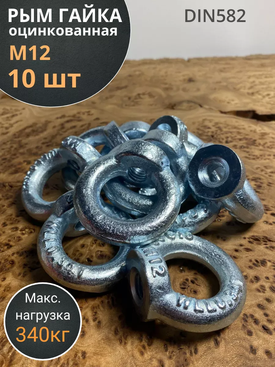 Рым гайка М12 оцинкованная DIN582, 10 шт.