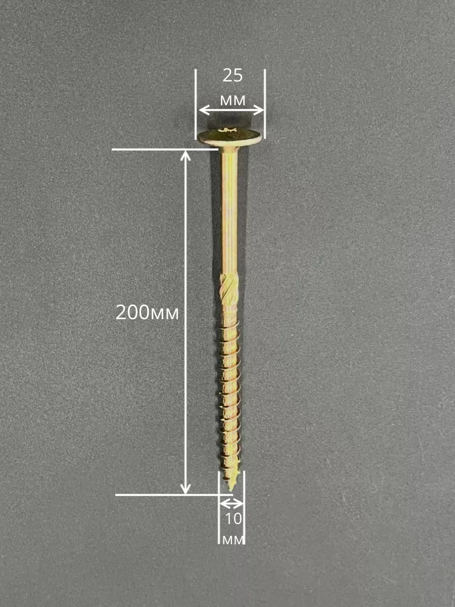 Саморез 10х200 по дереву с прессшайбой Тorx, ЖЦ, 5 шт.,