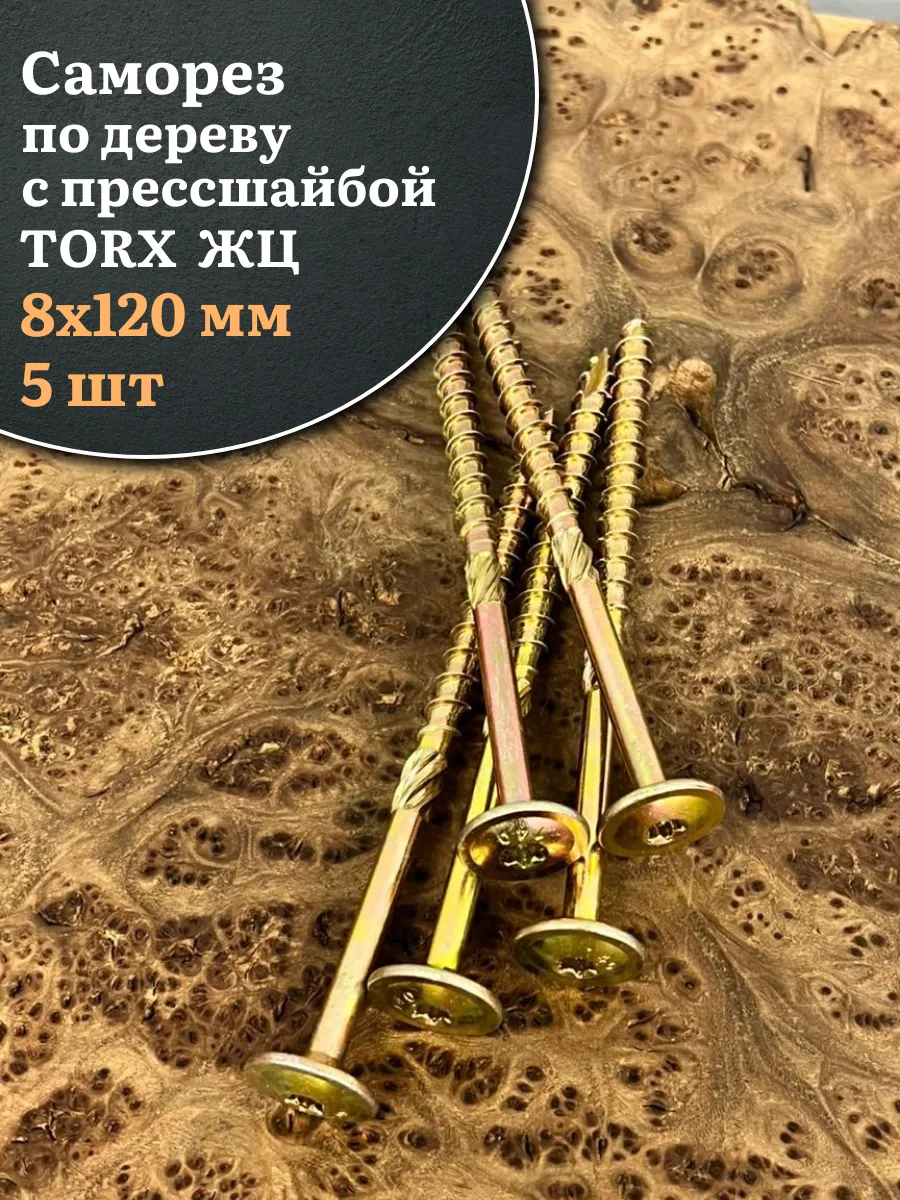 Саморез 8х120 по дереву с прессшайбой Тorx, ЖЦ, 5 шт.