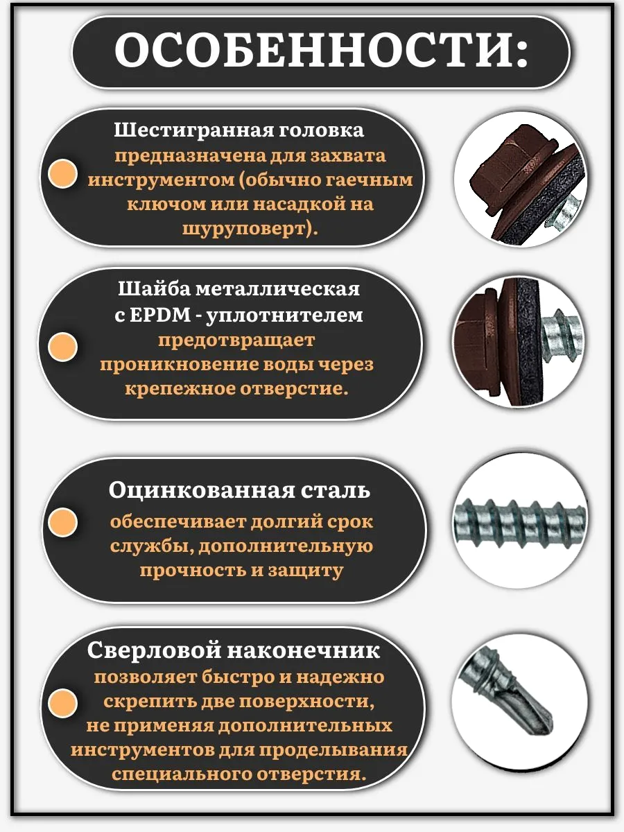 Саморез кровельный, 4,8х29 шоколадно-коричневый RAL8017 1000 шт