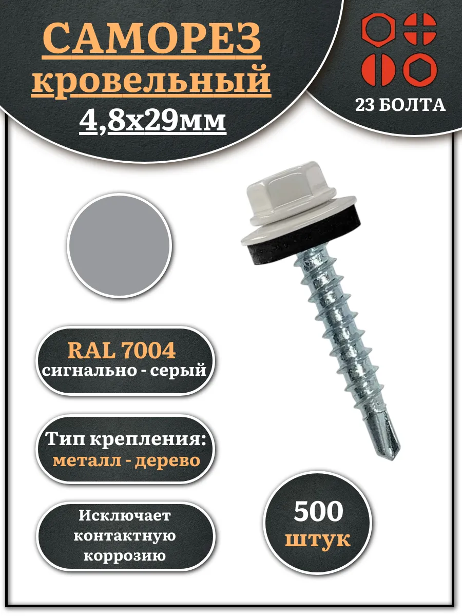 Саморез кровельный, 4,8х29 сигнально-серый RAL7004 500 шт