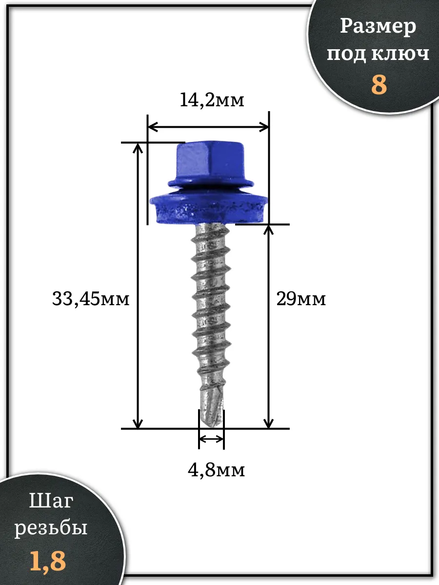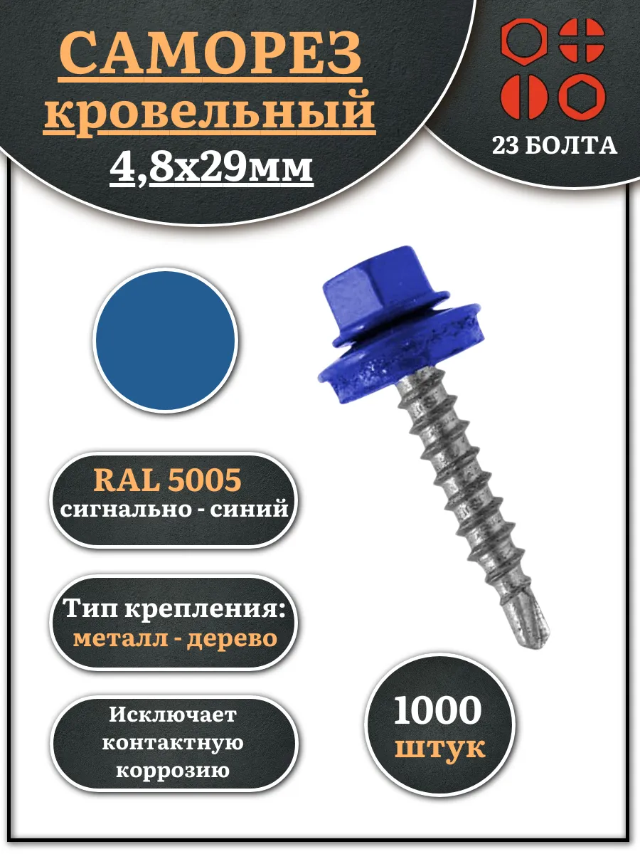 Саморез кровельный, 4,8х29 сигнально-синий RAL5005 1000 шт