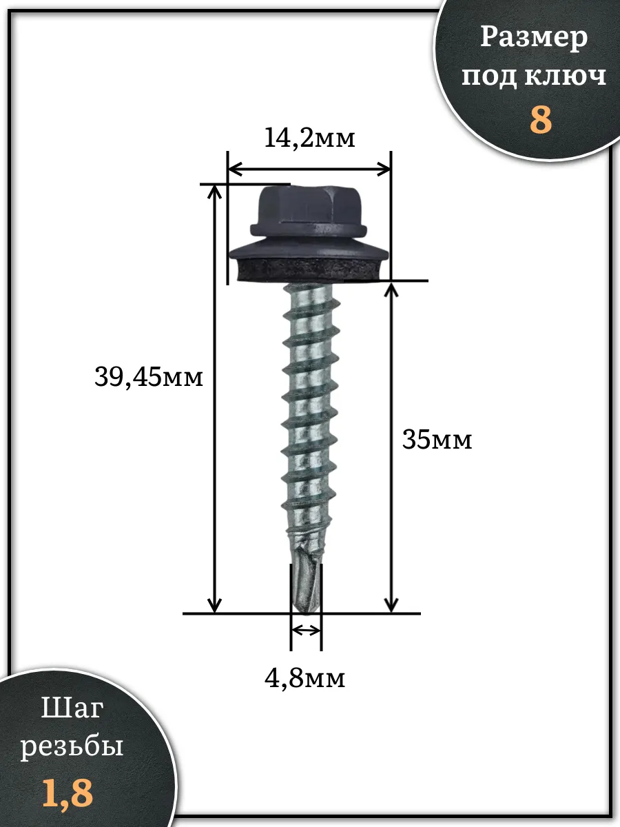 Саморез кровельный, 4,8х35 графитовый серый RAL7024 500 шт