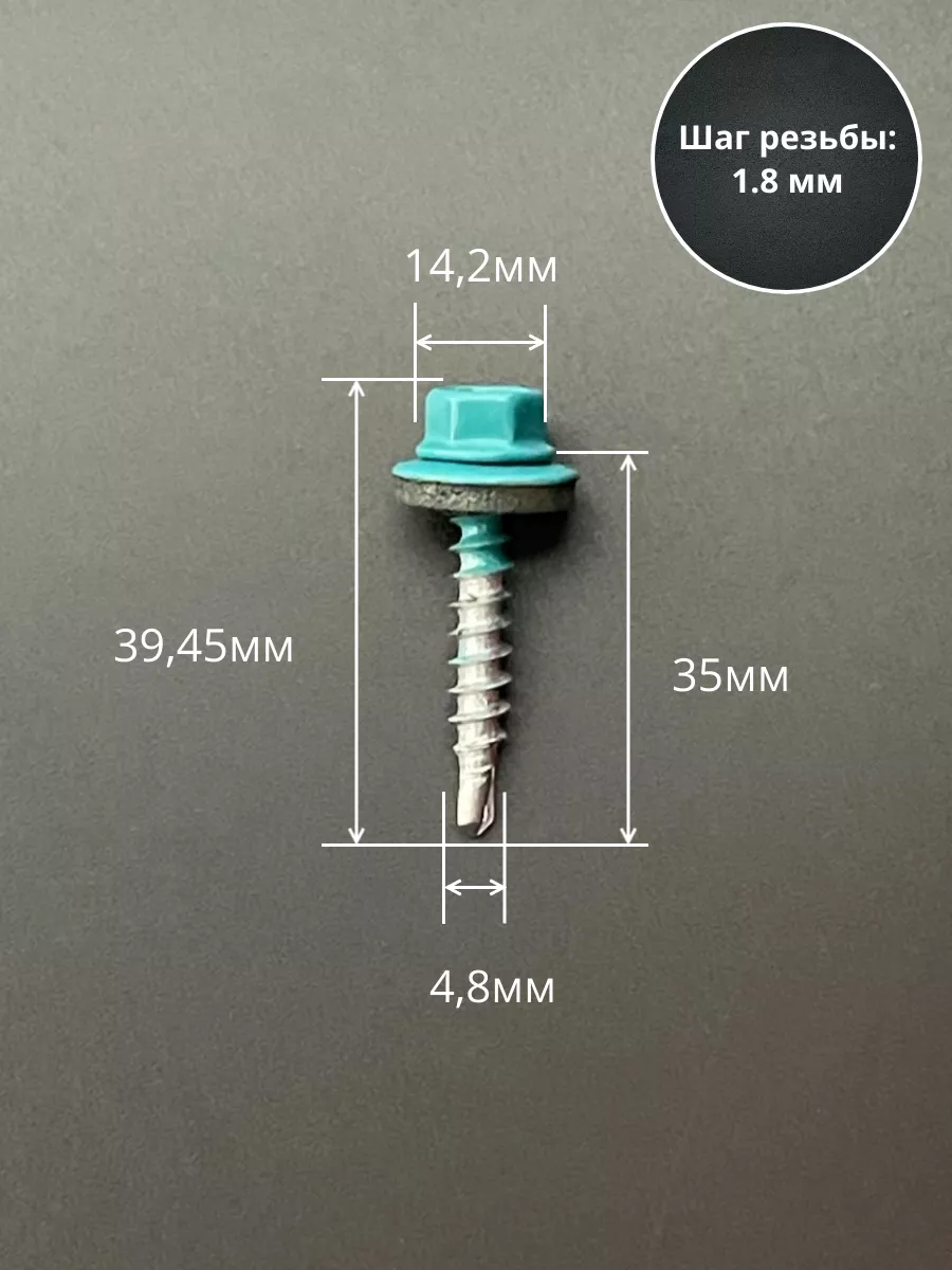 Саморез кровельный, 4,8х35 морская волна RAL5021 50 шт