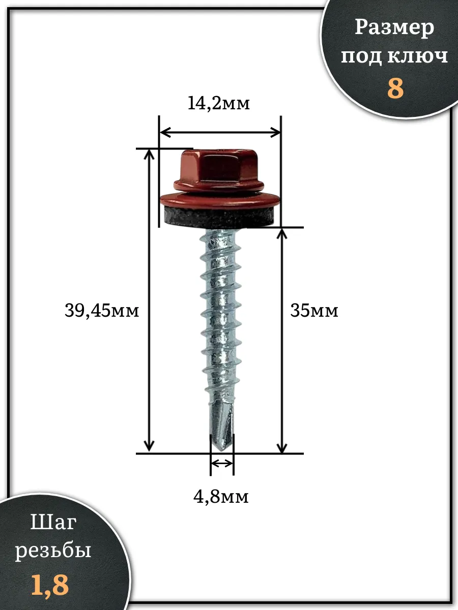 Саморез кровельный, 4,8х35 винно-красный RAL3005 1000 шт
