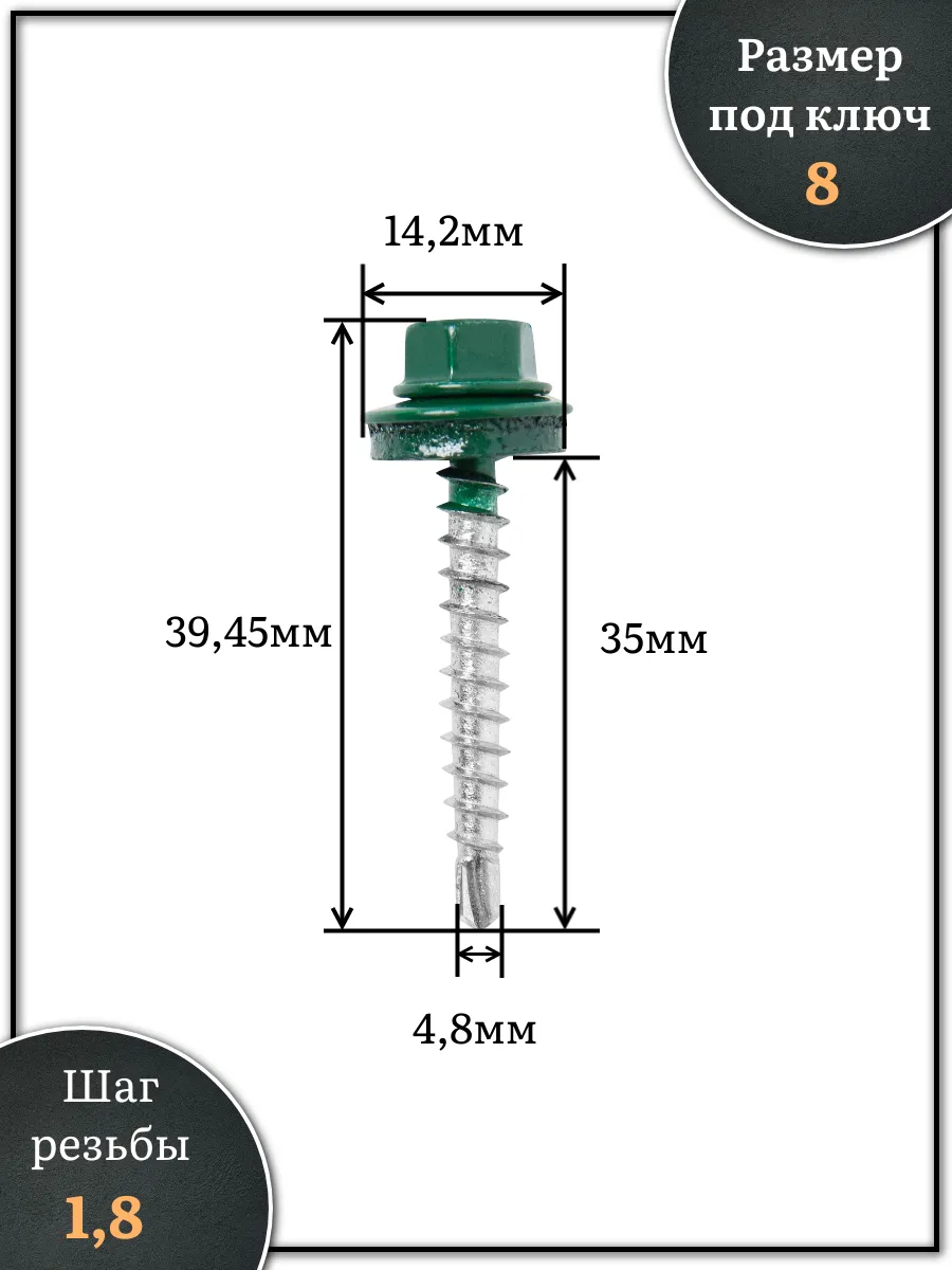 Саморез кровельный, 4,8х35 зеленый мох RAL6005 250 шт