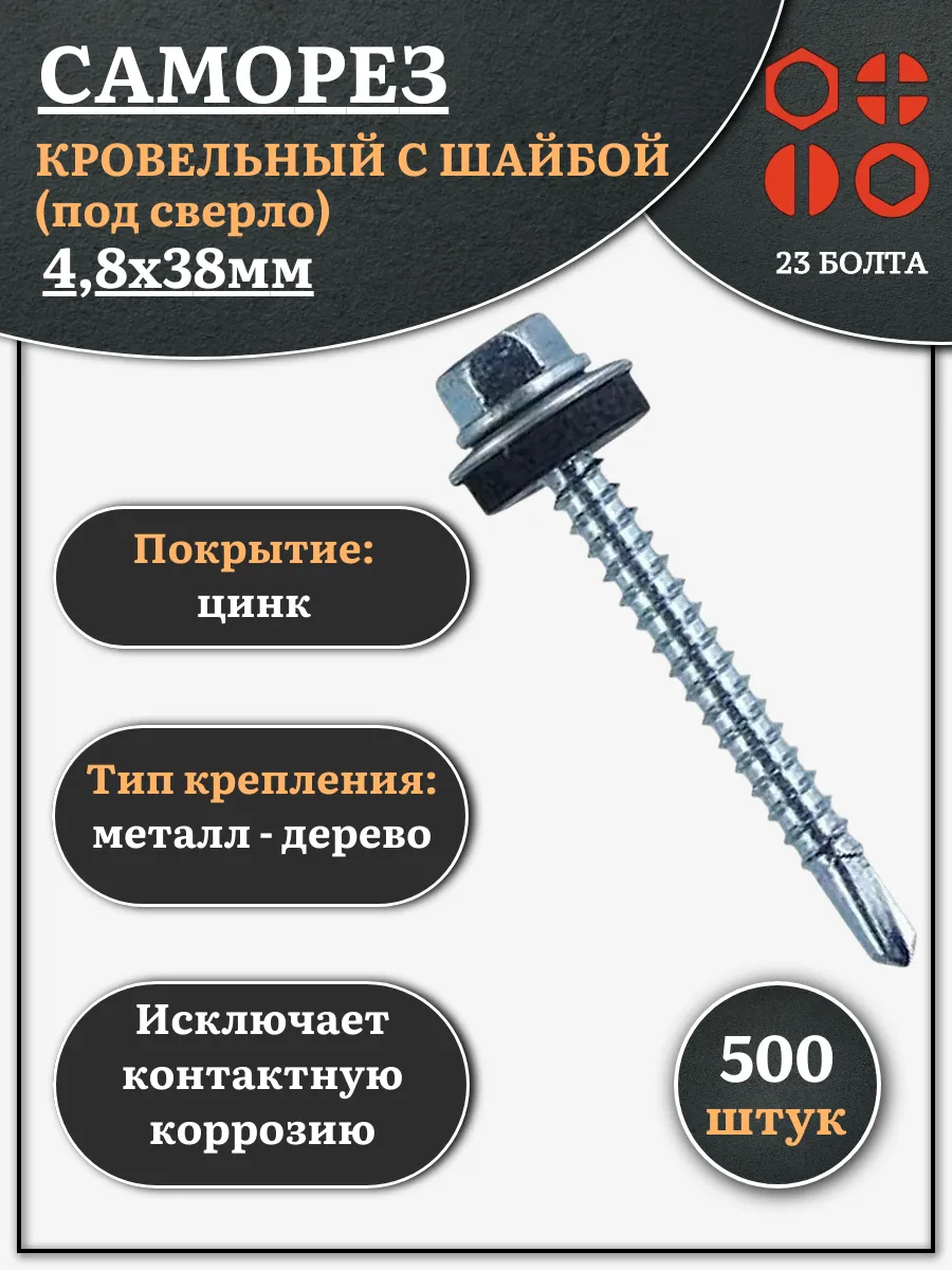 | Саморез кровельный 4,8х38 мм с шайбой (под сверло),ОЦ 100шт. | B03004803836H07ф100 | 1 шт. |