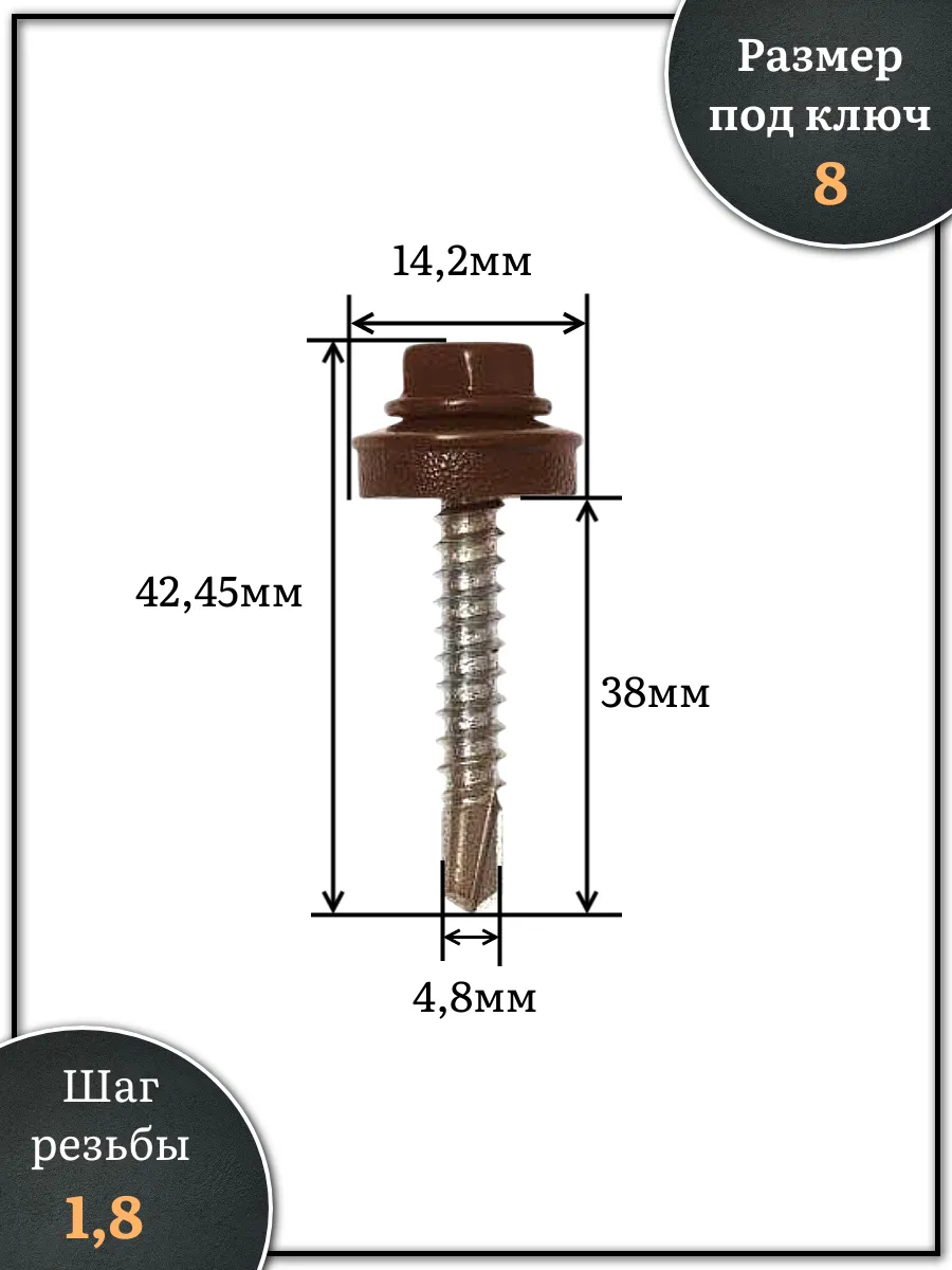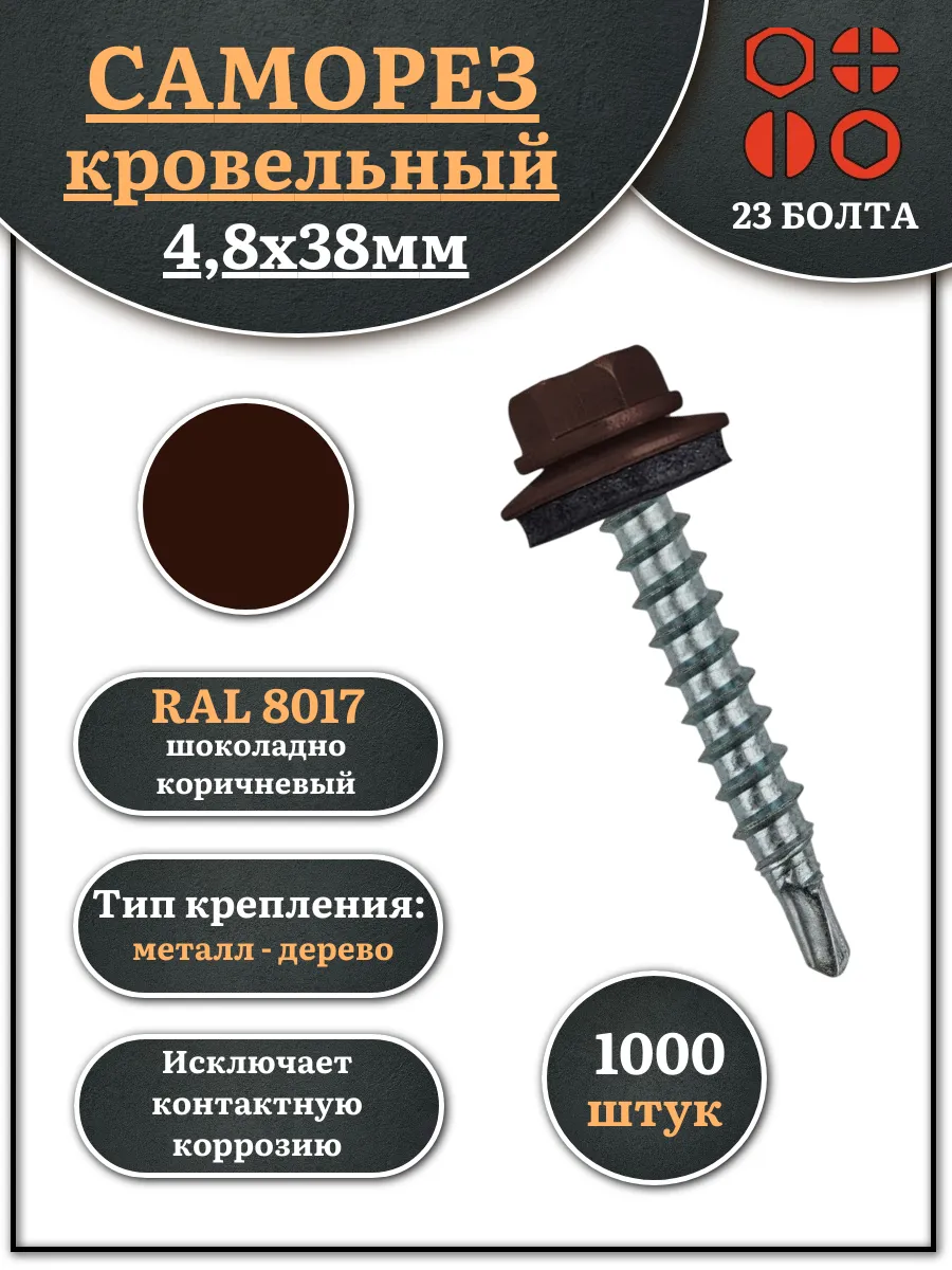 Саморез кровельный, 4,8х38 шоколадно-коричневый RAL8017 1000 шт