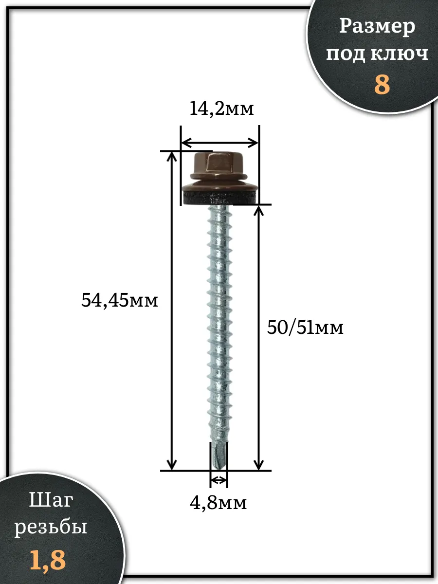 Саморез кровельный, 4,8х50/51 шоколадно-коричневый RAL8017 250 шт