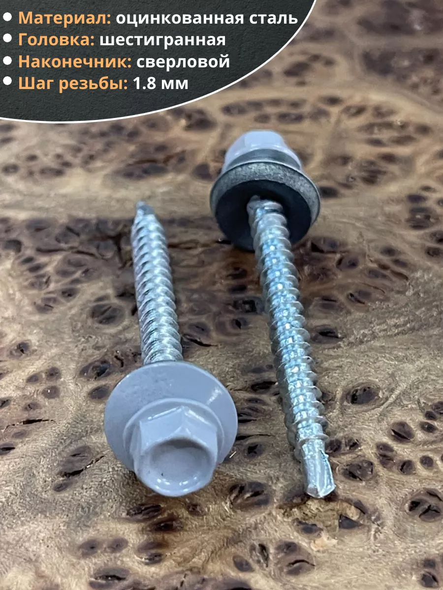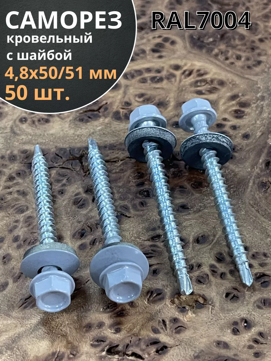 Саморез кровельный, 4,8х50/51 сигнально-серый RAL7004 50 шт