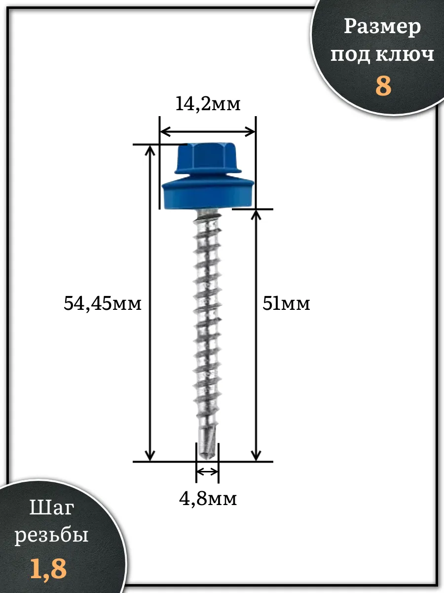 Саморез кровельный, 4,8х50/51 сигнально-синий RAL5005 250 шт