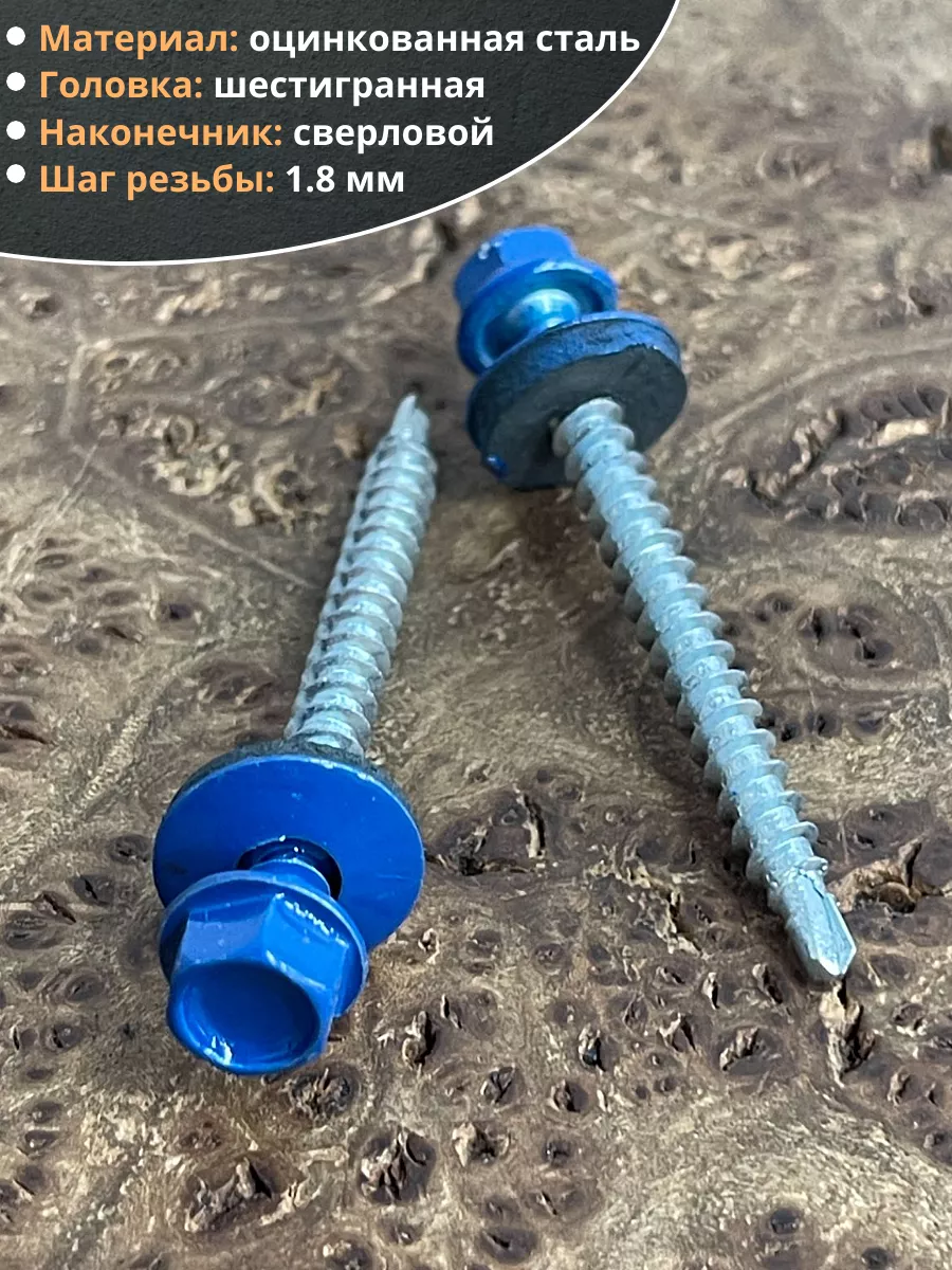 Саморез кровельный, 4,8х50/51 сигнально-синий RAL5005 50 шт