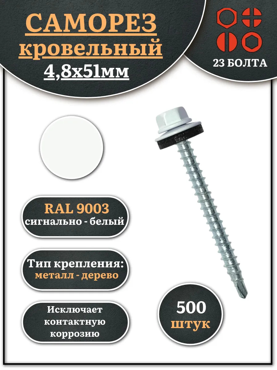 Саморез кровельный, 4,8х51 сигнально-белый RAL9003 500 шт