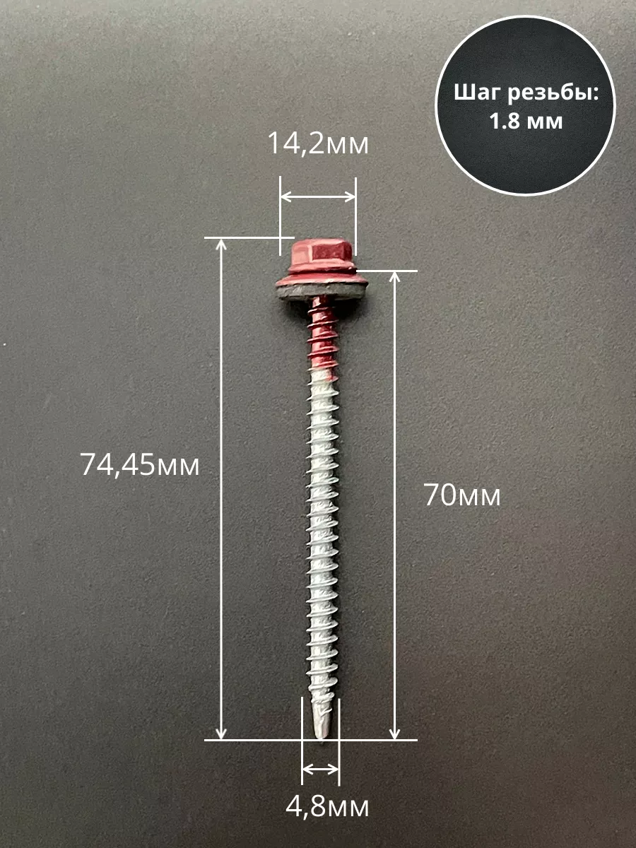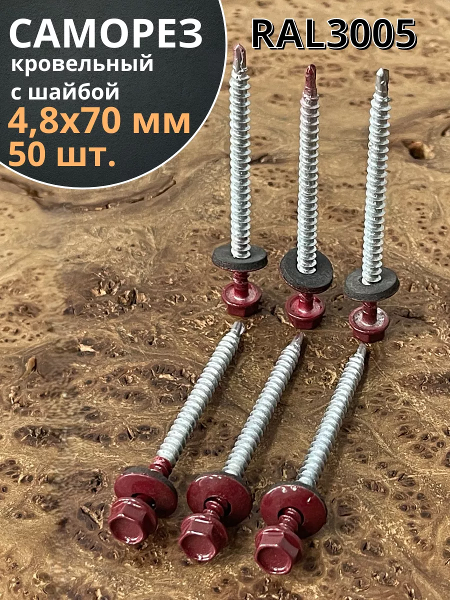 Саморез кровельный, 4,8х70 винно-красный RAL3005 50 шт