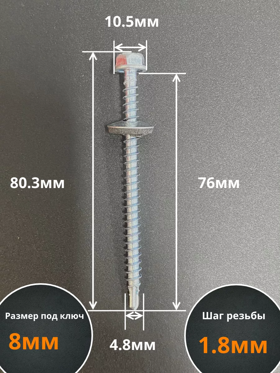 | Саморез кровельный 4,8х76 мм с шайбой (под сверло),ОЦ 500шт. | B03004807634007ф500 | 1 шт. |
