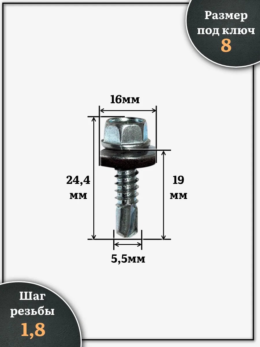 | Саморез кровельный 5.5х19 мм с шайбой (под сверло),ОЦ 100шт. | B03005501932A07ф100 | 1 шт. |