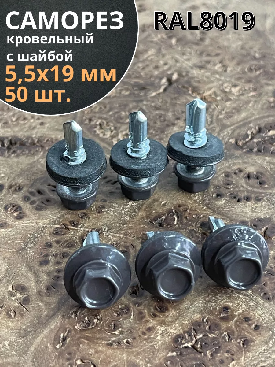 Саморез кровельный, 5,5х19 серо-коричневый RAL8019 50 шт