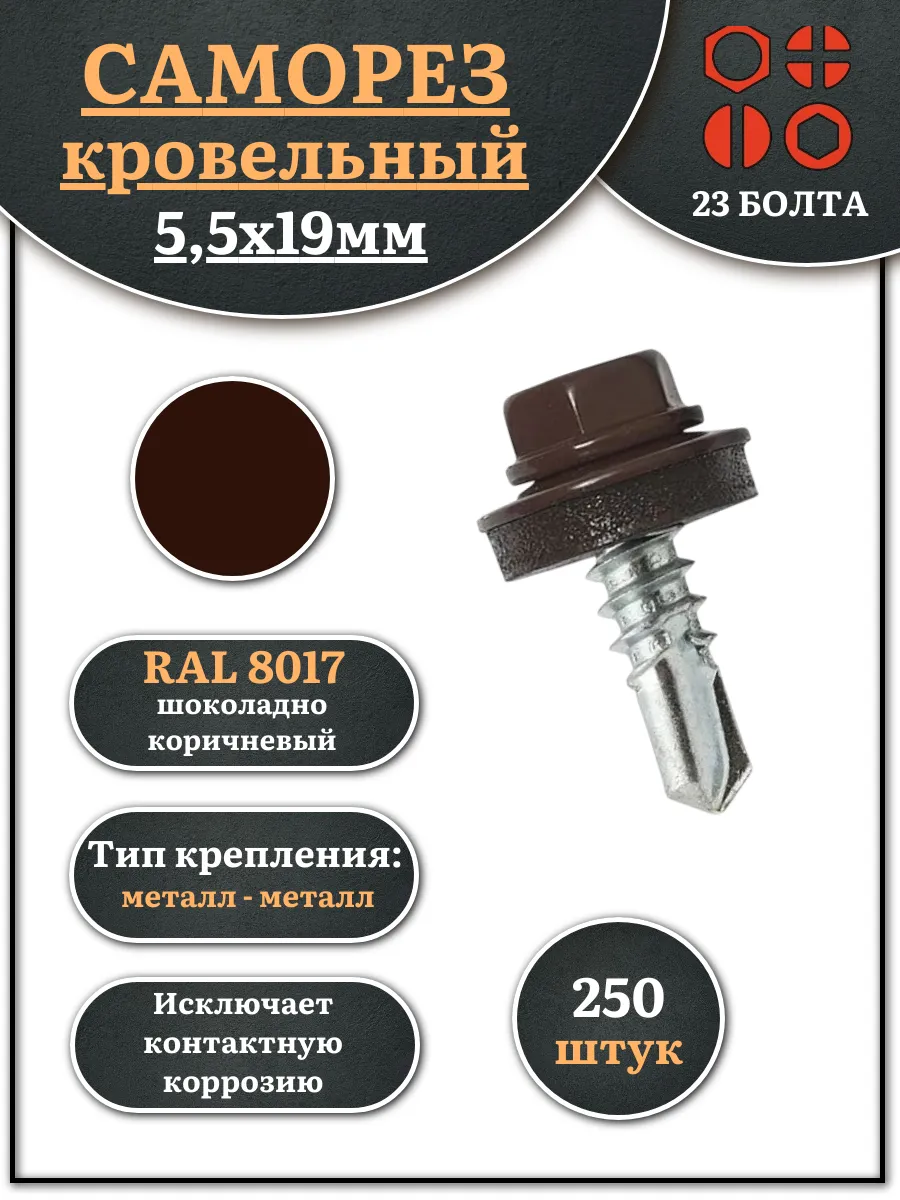 Саморез кровельный, 5,5х19 шоколадно-коричневый RAL8017 250 шт