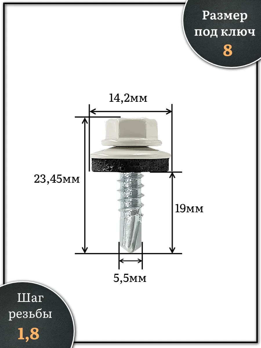 Саморез кровельный, 5,5х19 сигнально-белый RAL9003 1000 шт