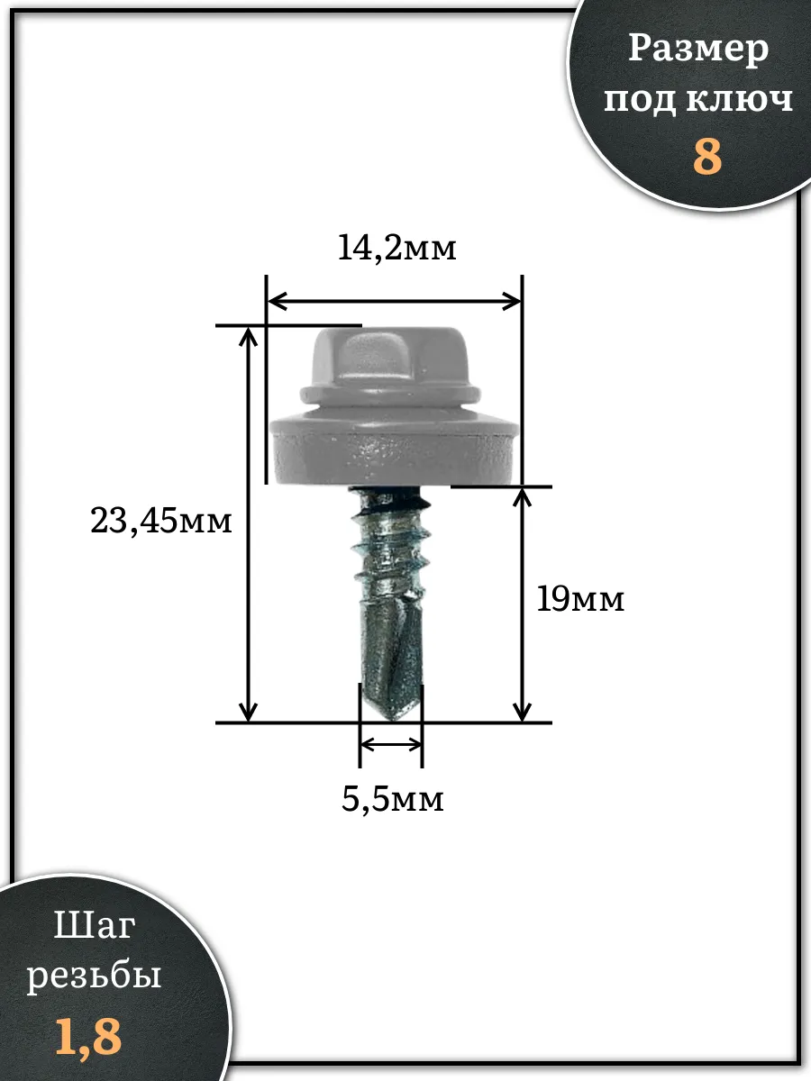 Саморез кровельный, 5,5х19 сигнально-серый RAL7004 1000 шт