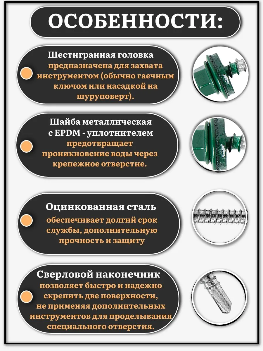 Саморез кровельный, 5,5х19 зеленый мох RAL6005 1000 шт