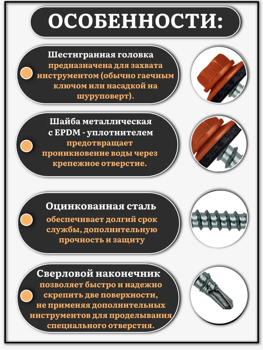 Саморез кровельный, 5,5х25 медно-коричневый RAL8004 500 шт