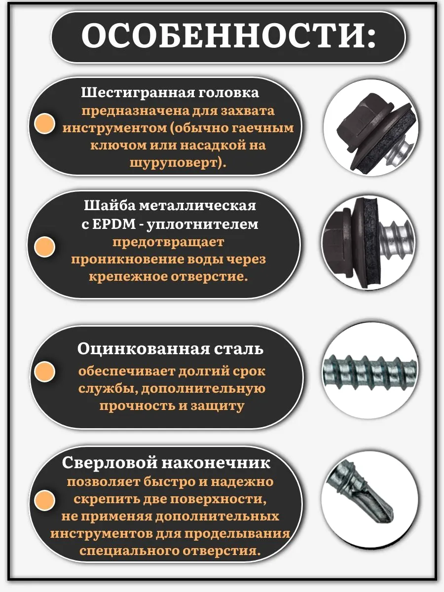 Саморез кровельный, 5,5х25 серо-коричневый RAL8019 250 шт