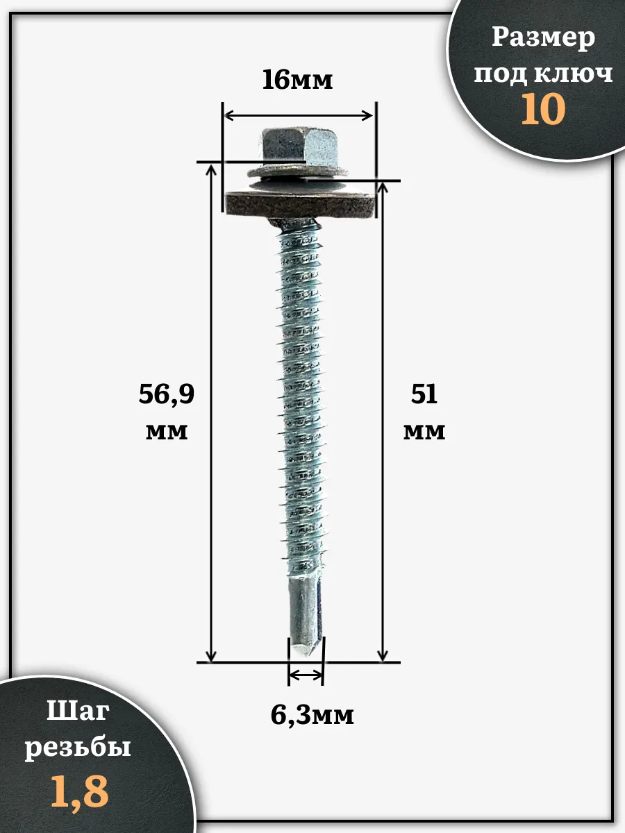 | Саморез кровельный 6,3х51 мм с шайбой (под сверло),ОЦ 500шт. | B03006305134107ф500 | 1 шт. |