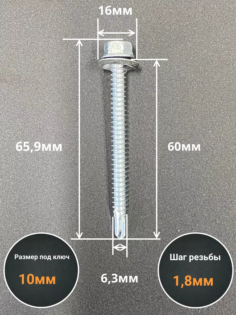 Саморез кровельный 6,3х60 мм с шайбой (под сверло),ОЦ 50шт.