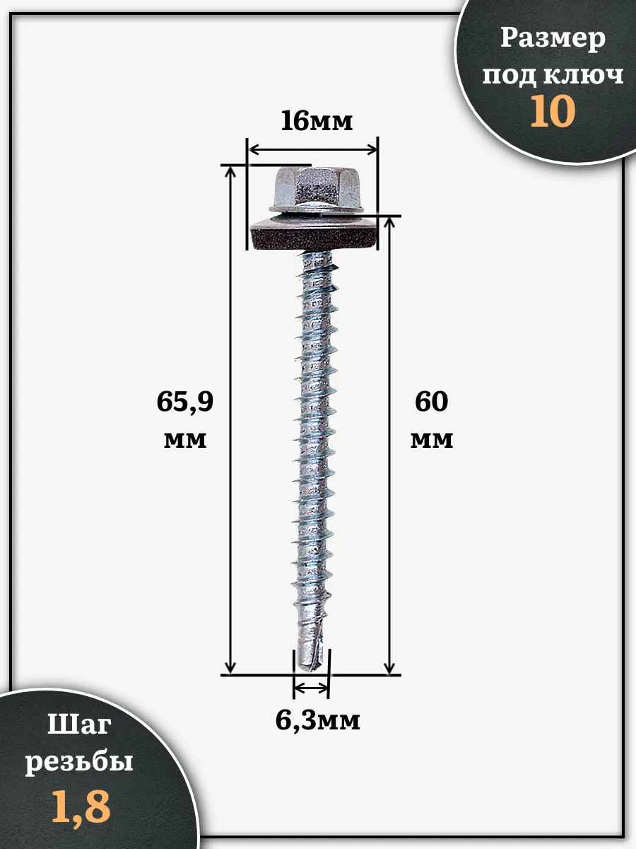 Саморез кровельный 6,3х60 мм с шайбой (под сверло),ОЦ