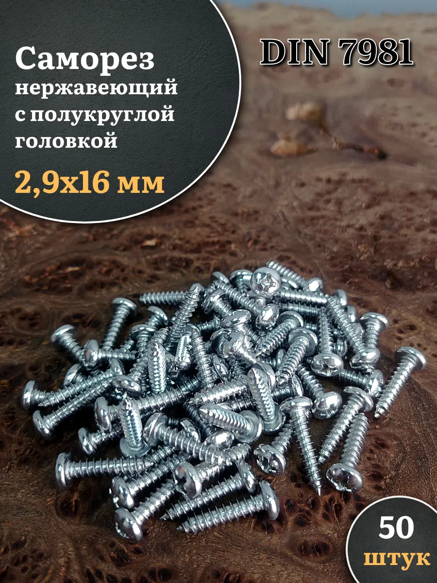 Саморез нержавеющий полукруглая гол. 2,9х16 DIN7981 , 50 шт.