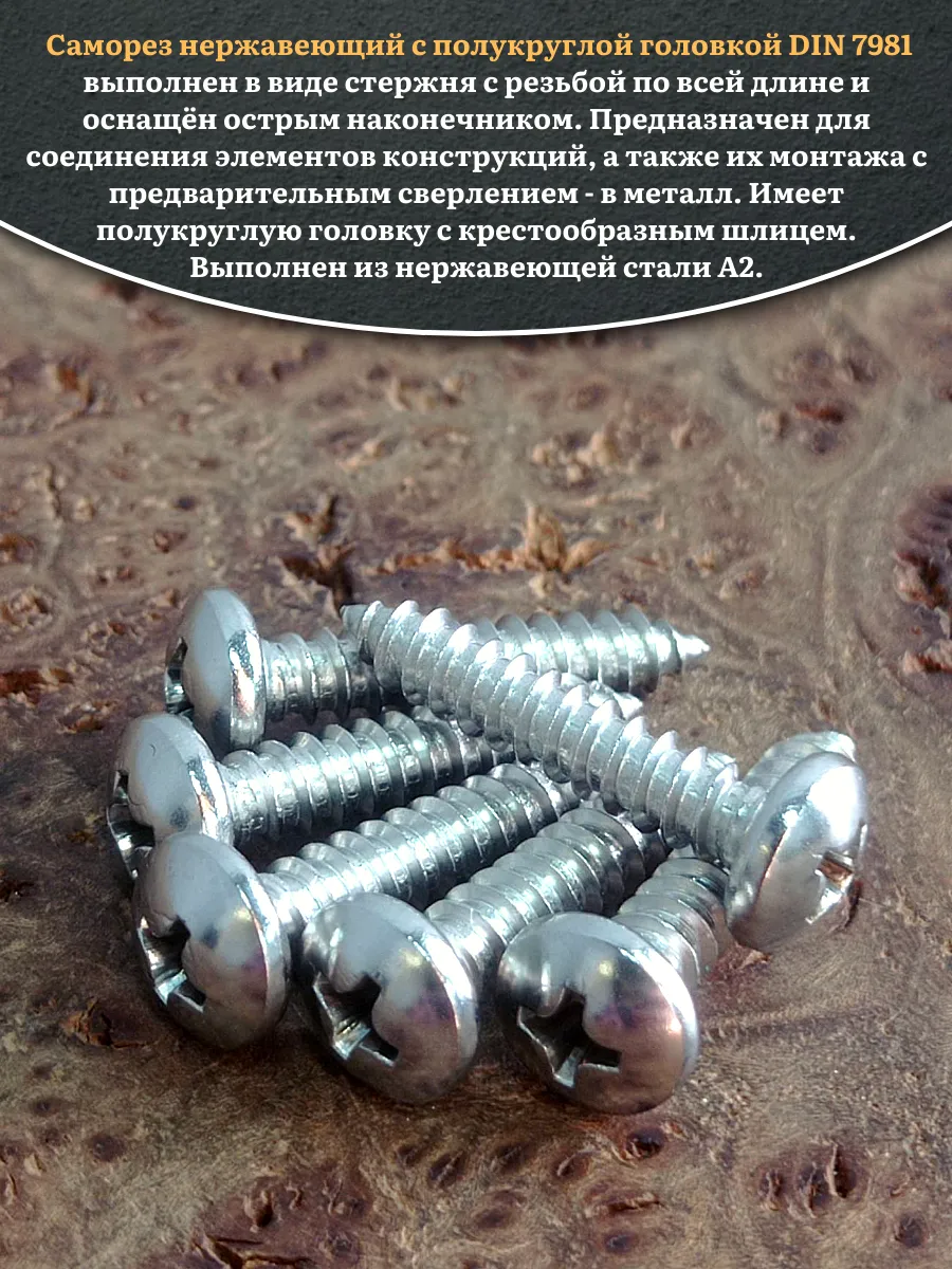 Саморез нержавеющий полукруглая гол. 3,5х22 DIN7981 , 20 шт.