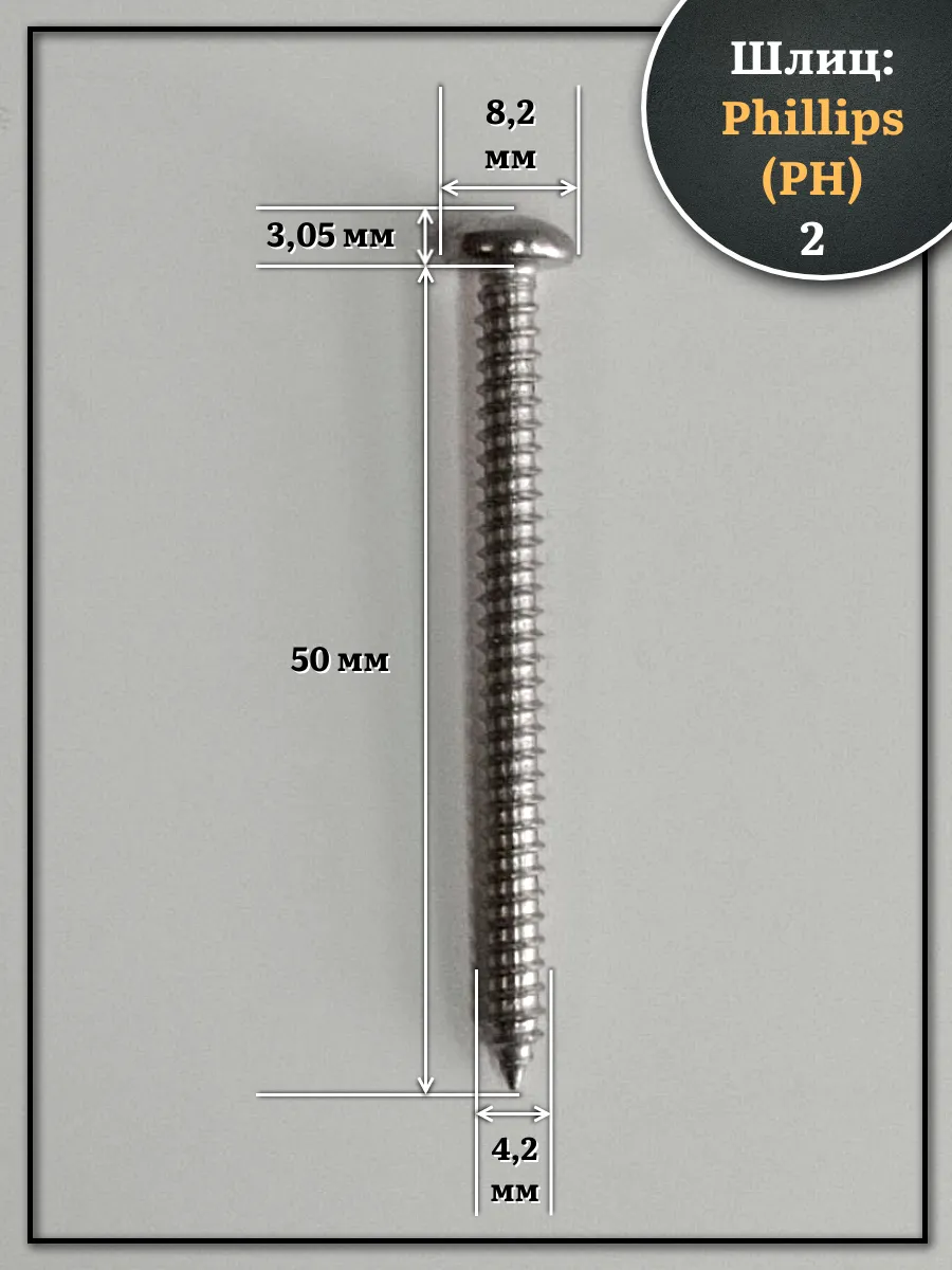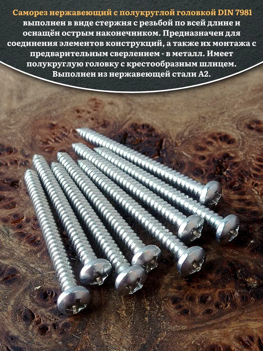 Саморез нержавеющий полукруглая гол. 4,2х50 DIN7981 , 20 шт.