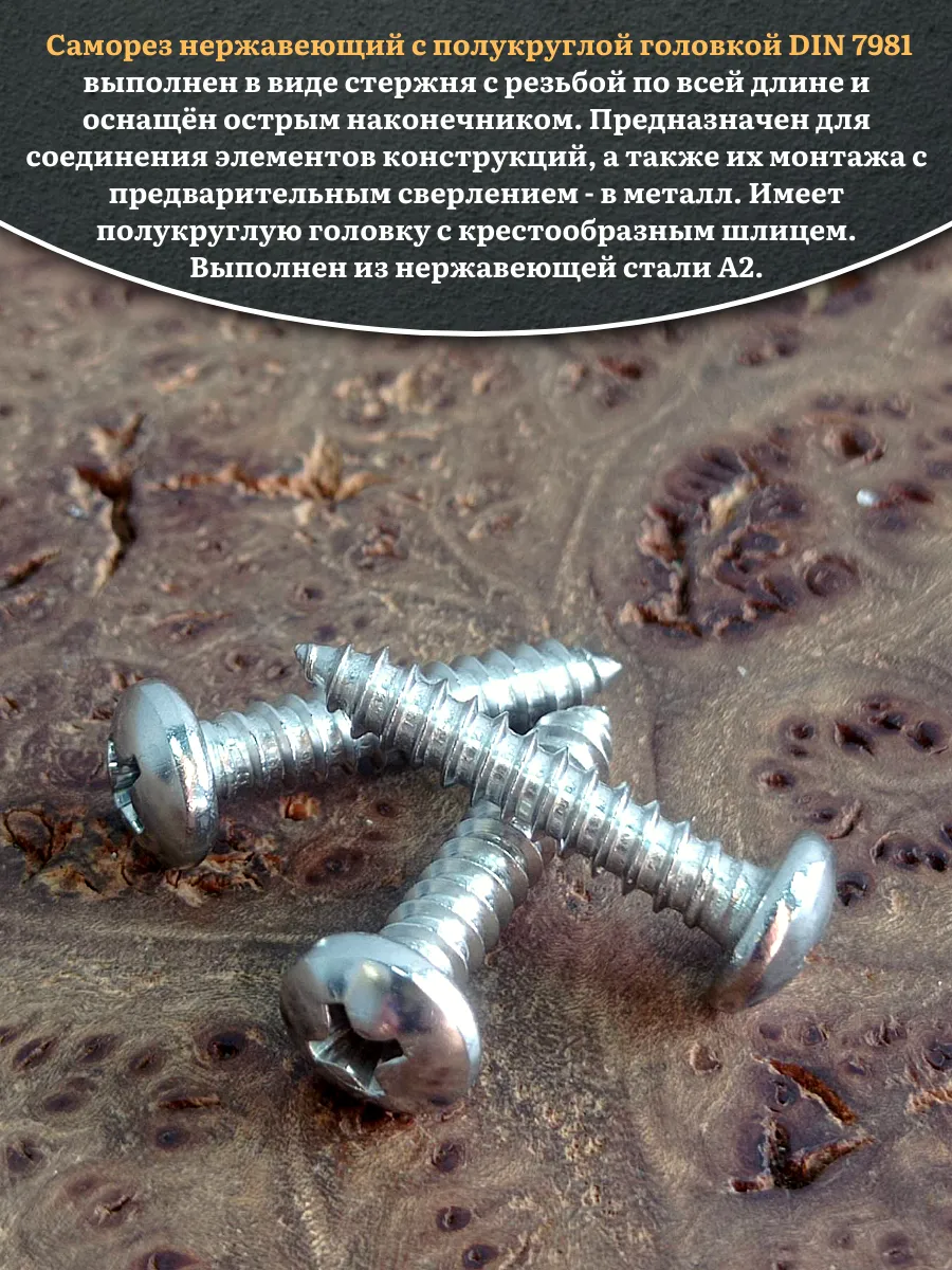 Саморез нержавеющий полукруглая гол. 4,8х25 DIN7981 , 100 шт.