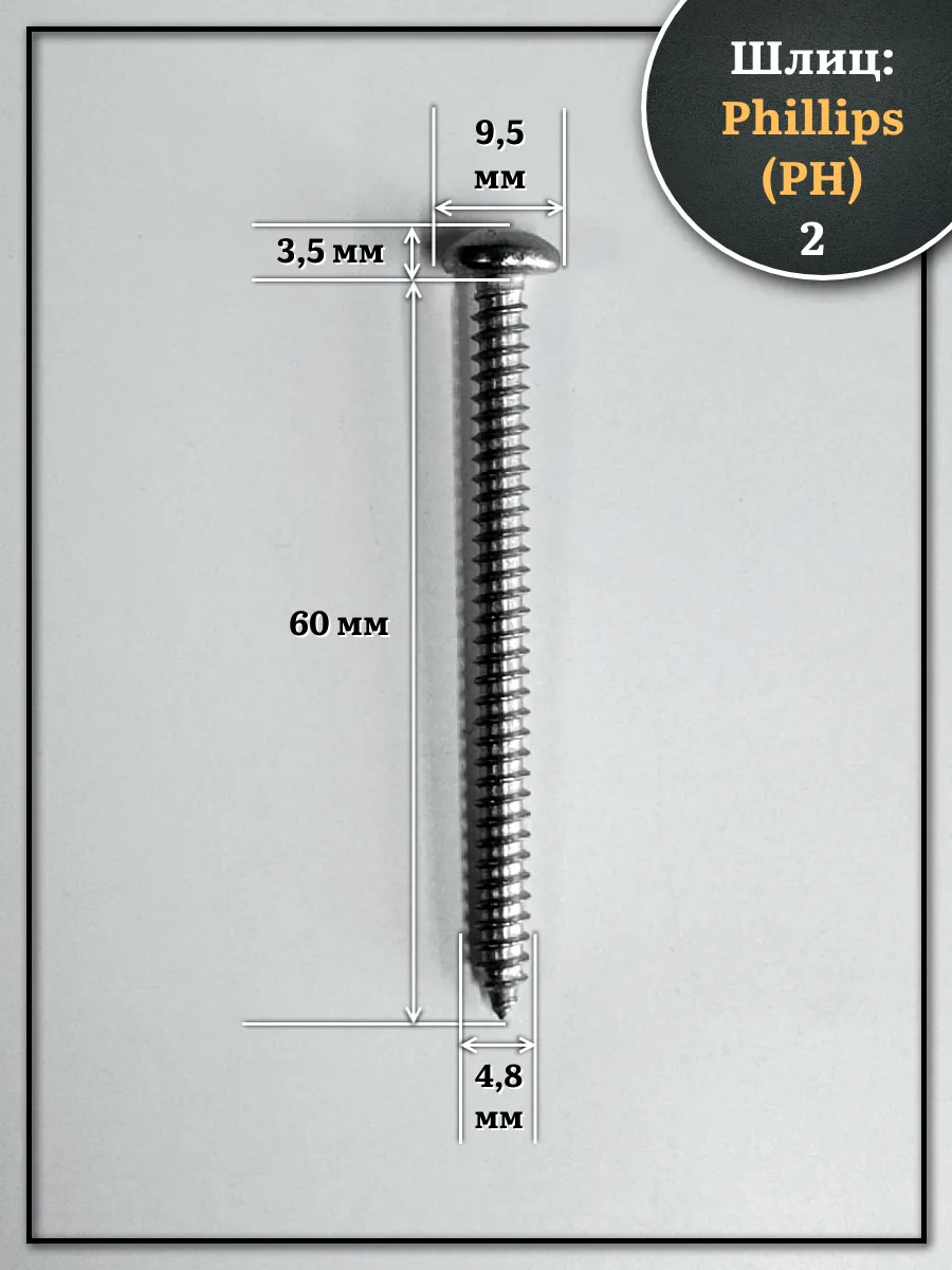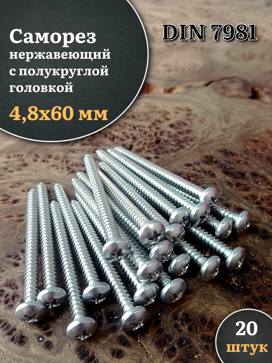 Саморез нержавеющий полукруглая гол. 4,8х60 DIN7981 , 20 шт.